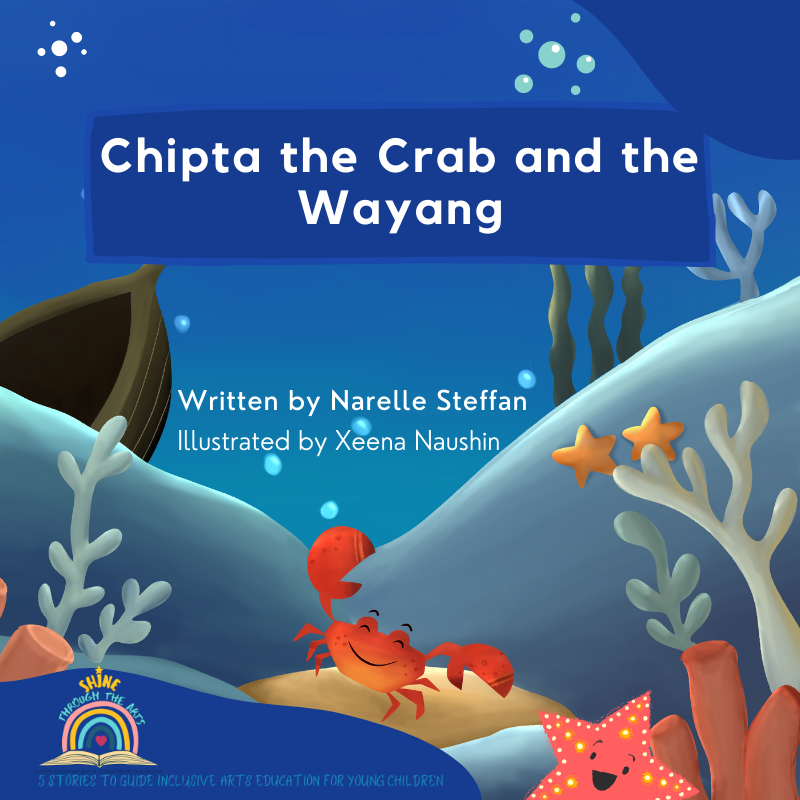Chipta is a young crab who sometimes finds friendships difficult. He loves tha sparkly Indonesioan Wayang dance and music, but his fish friends prefer the smooth gentle recorder playing. How can they solve this dilemma?